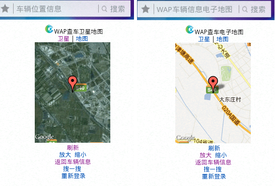 手机WAP查车简捷方便,支持中英文切换,运用任何一款手机,公司、个人都可以随时随地掌握车辆的位置信息,并将位置信息通过电子地图或者卫星地图清楚的显示出来。(注:使用手机WAP查车功能,必须首先开通GPRS功能)